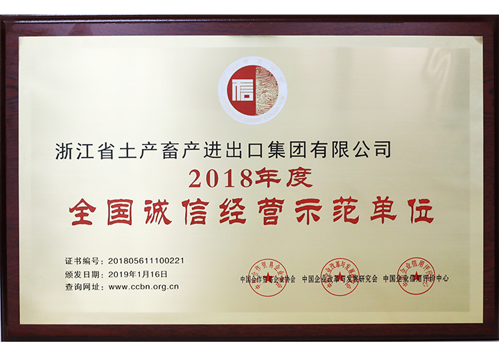 2018年度全國誠信經營示范單位(2018)