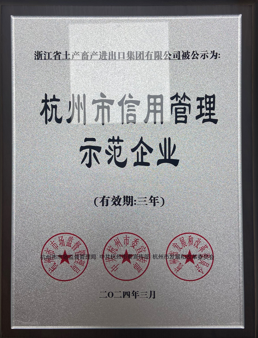 杭州市信用管理示范企業(2024)