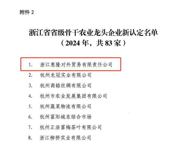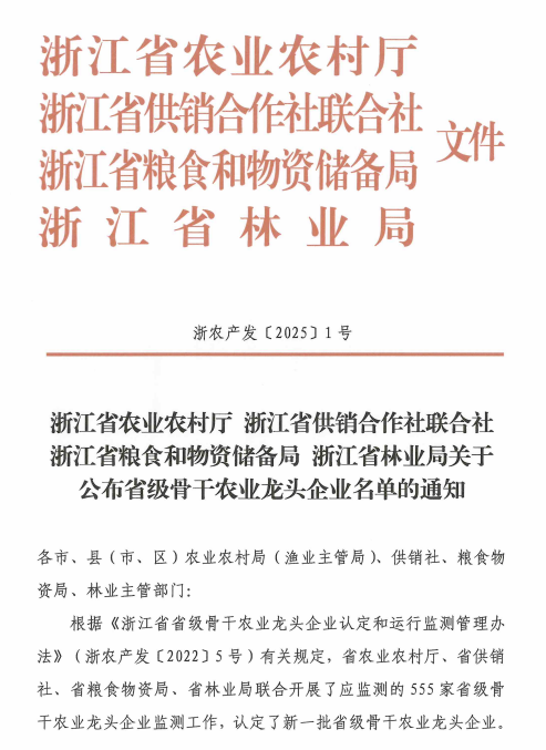 新認(rèn)定!浙江惠隆獲評(píng)省級(jí)骨干農(nóng)業(yè)龍頭企業(yè)稱號(hào)