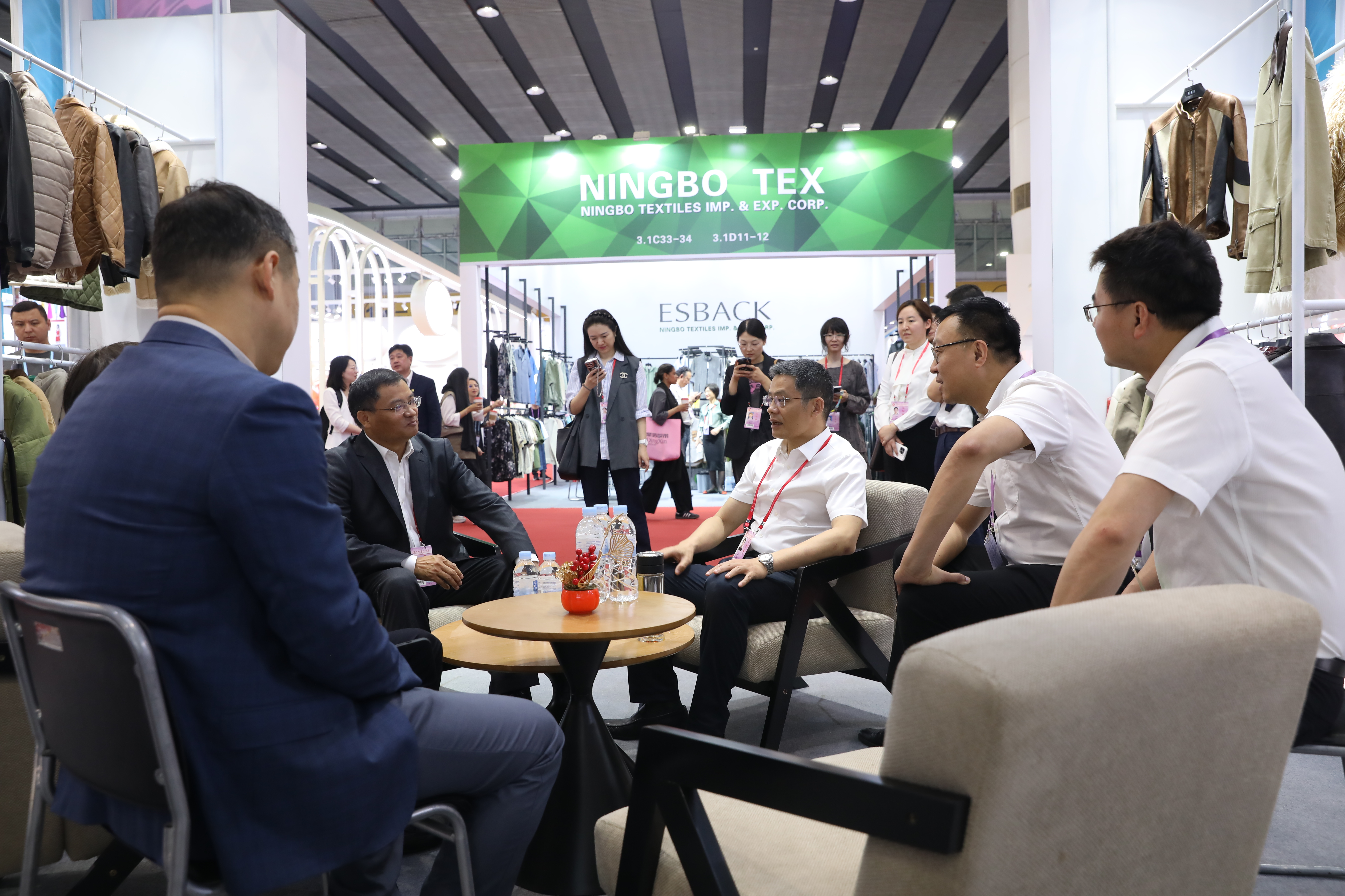 展會期間,省國貿(mào)集團董事長、黨委書記高秉學(xué),副總經(jīng)理、黨委委員張勇深入浙江土畜展位,詳細了解參展情況、市場變化和企業(yè)應(yīng)對舉措。中國紡織品進出口商會會長曹甲昌、中國食品土畜進出口商會會長曹德榮先后走訪浙江土畜展位,就產(chǎn)品開發(fā)、訂單出運、當(dāng)前外貿(mào)形勢等展開深入交流。