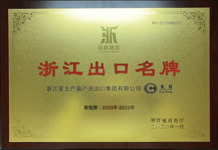 浙江土畜榮獲“浙江外貿(mào)出口重點(diǎn)聯(lián)系企業(yè)”、“浙江出口名牌”獎(jiǎng)牌