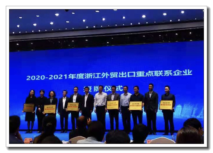 11月19日上午,省商務(wù)廳聯(lián)合杭州海關(guān)、省貿(mào)促會(huì)舉辦RCEP浙江省自貿(mào)協(xié)定政策宣講啟動(dòng)儀式,“2019年浙江出口名牌”“2020-2021年度浙江外貿(mào)出口重點(diǎn)聯(lián)系企業(yè)”榮譽(yù)企業(yè)授牌活動(dòng)同期舉行,浙江土畜總經(jīng)理?xiàng)钴S勝出席并代表公司領(lǐng)獎(jiǎng)。