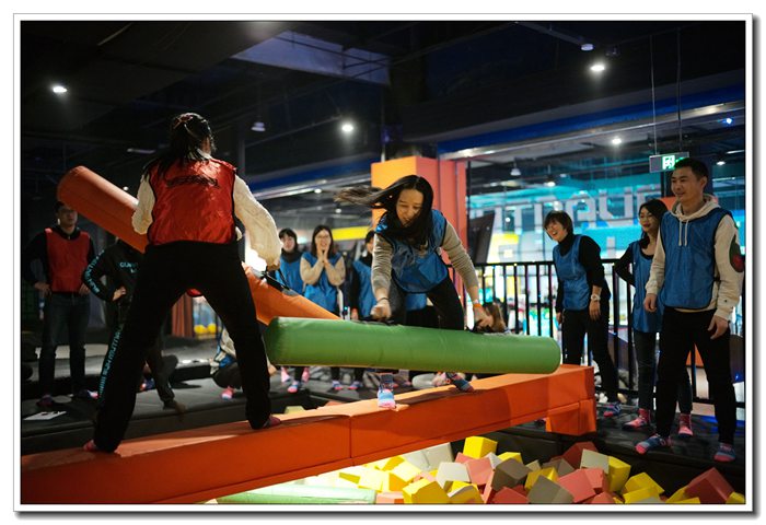 活動在室內競技基地拉開帷幕,在教練的引導下,大家進行了隨機分組,熱身和破冰運動后,各種素質拓展活動接踵而至,隊員們摩拳擦掌、斗志昂揚,開展了激烈角逐。在獨木橋對抗車輪賽中,隊長進行戰術分配,場上隊員一對一全力比拼,場下同伴吶喊助威;真人CS比賽中,大家互相協助,分享經驗;星際穿越跑酷中,面對錯綜復雜的路線和關卡,小伙伴們群策群力、攜手前進,利用團隊智慧爭分奪秒,拼搏實力的同時加強了成員之間的合作與交流。