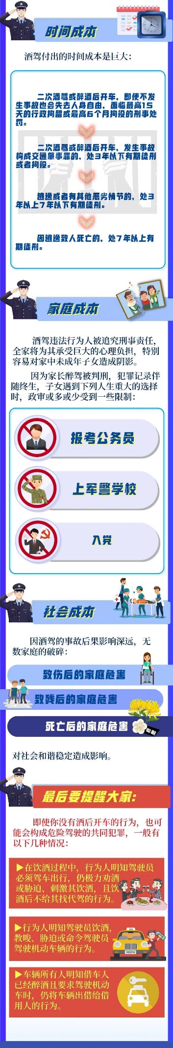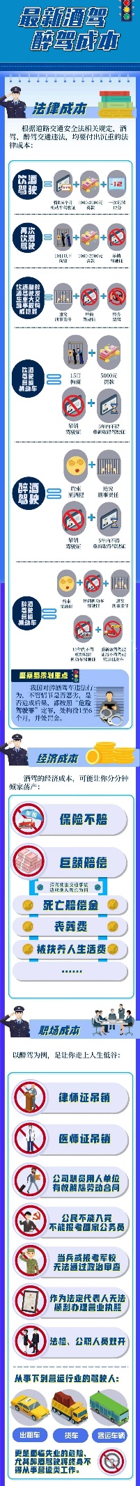 為進一步嚴(yán)明紀(jì)律規(guī)矩,督促引導(dǎo)公司廣大員工特別是黨員干部帶頭遵紀(jì)守法,堅決遏制酒駕醉駕違紀(jì)違法行為的發(fā)生,公司紀(jì)委現(xiàn)將酒駕醉駕成本清單予以整理,供大家警醒學(xué)習(xí)。