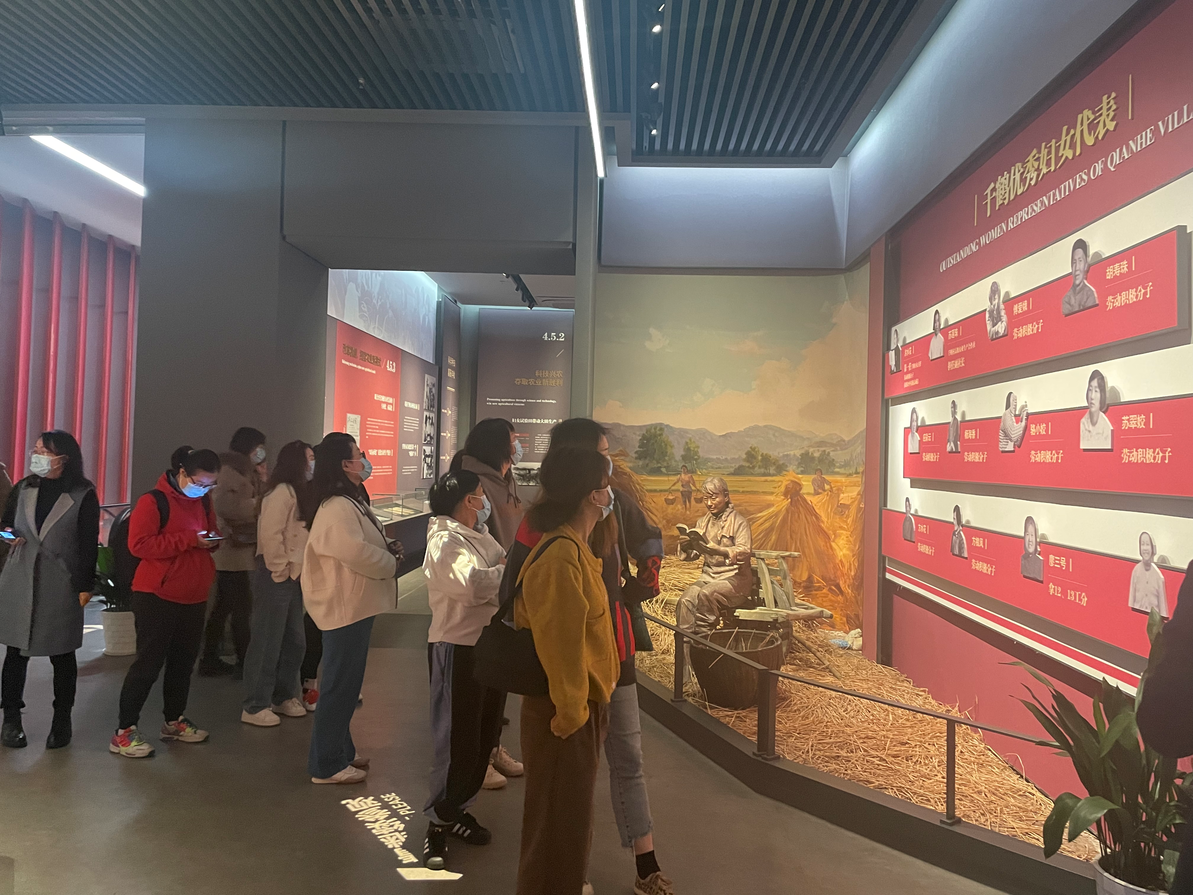 梅城鎮(zhèn)的千鶴村,因《詩經(jīng)》中“鶴鳴于九皋,聲聞?dòng)谝啊钡睦寺鑼懚妹敲飨皨D女能頂半邊天”思想的重要發(fā)源地,也是“千鶴婦女精神”的誕生地。在解說員的帶領(lǐng)下大家參觀學(xué)習(xí)了解放初期千鶴婦女們響應(yīng)黨和國家號召,打破傳統(tǒng)習(xí)俗,實(shí)現(xiàn)男女同工同酬的婦女精神,見證了女性奮起抗?fàn)幍健绊斊鸢脒吿臁钡膴^斗歷程。