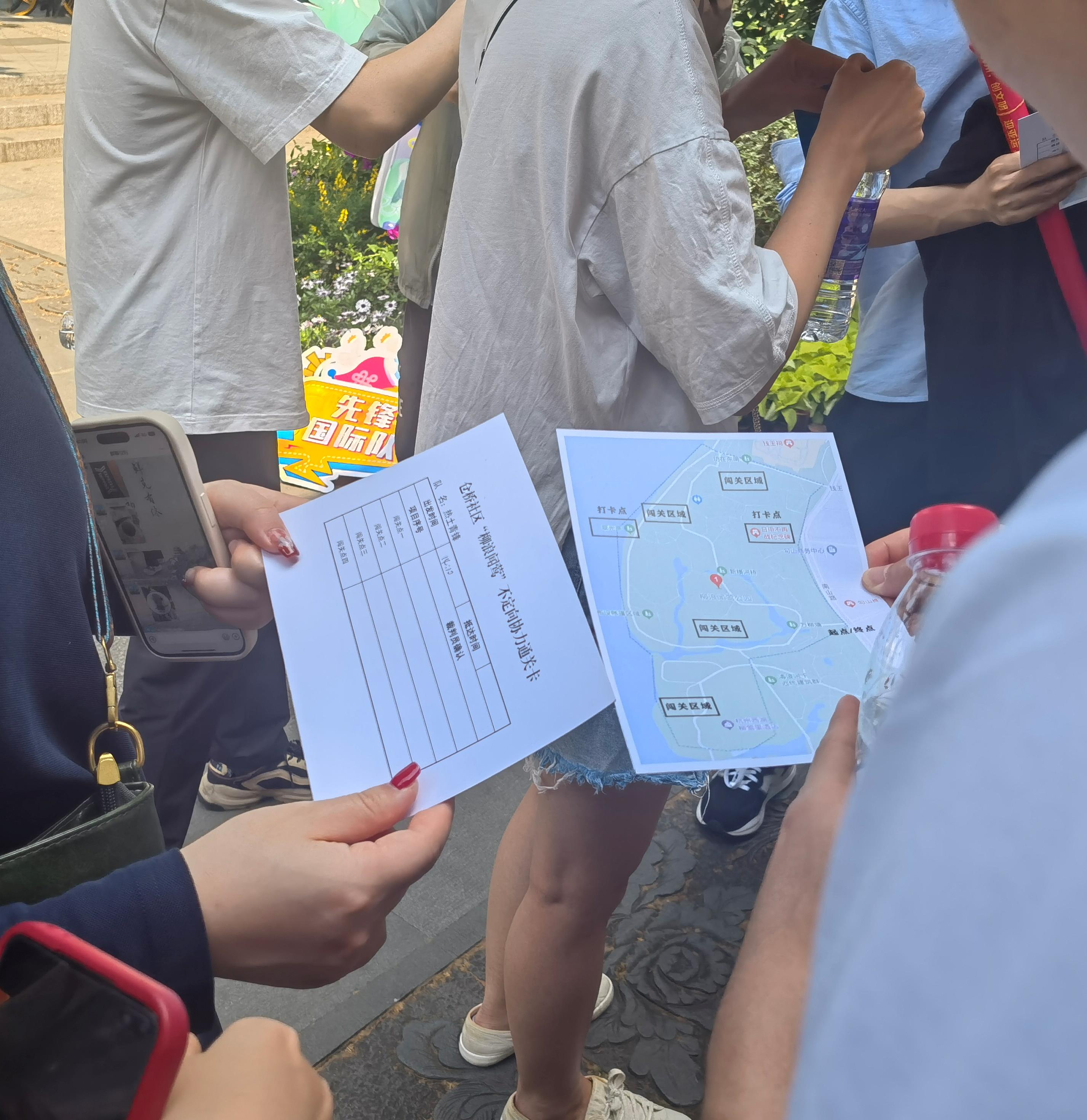 本次活動共設置2個打卡點,4個闖關點,參與者需到打卡點拍照打卡并到達規定區域通過“紙不落地”、“轉圈擊掌”、“秒解繩結”、“瘋狂搖擺”的趣味項目完成闖關。