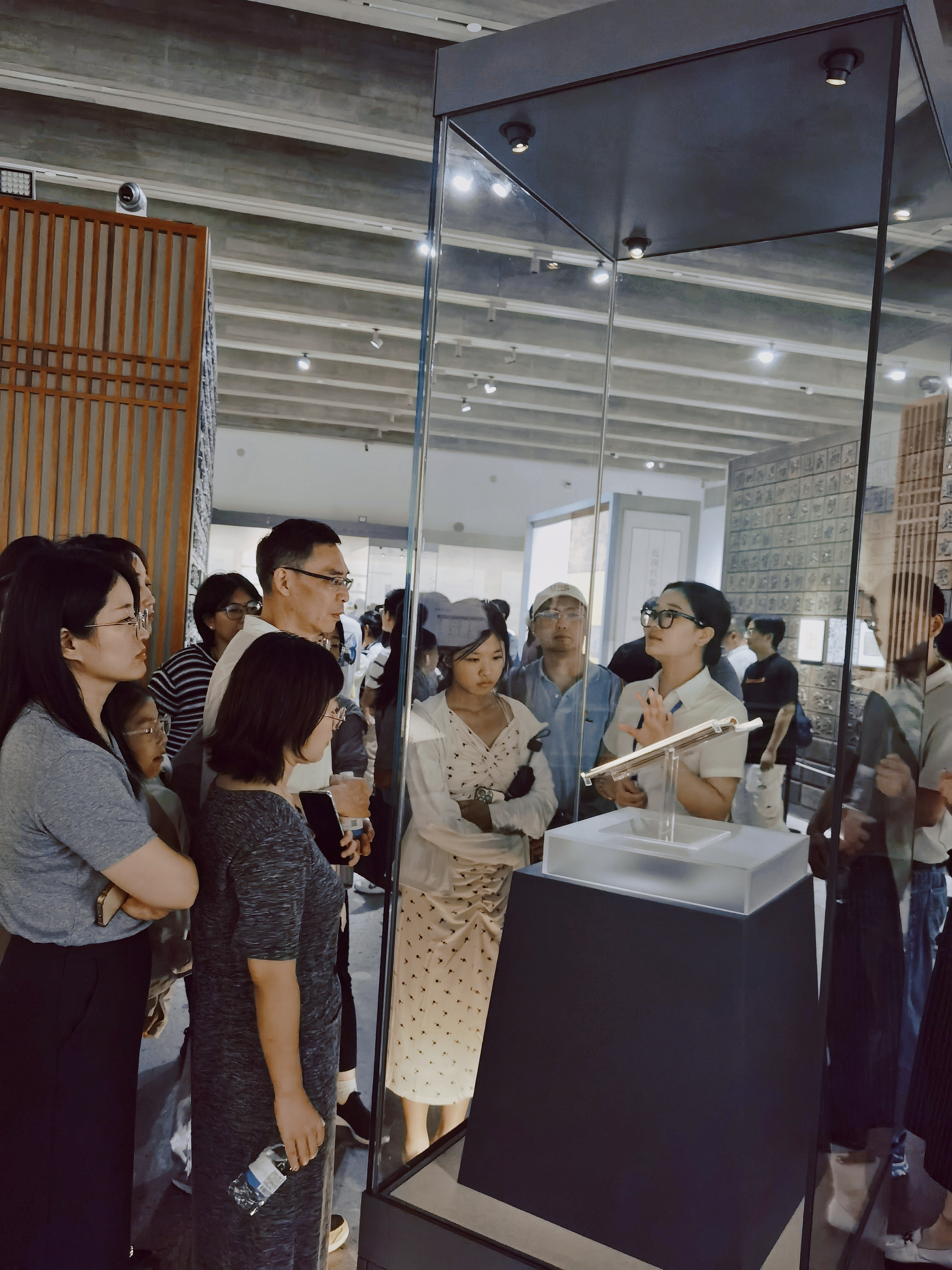 活動(dòng)中,大家先后參觀了“文獻(xiàn)之邦——江南版本文化概覽展”“盛世浙學(xué)——浙江文化研究工程成果展”“千古風(fēng)流——浙江歷史文化名人展”三個(gè)實(shí)體展覽館,從良渚玉琮的紋飾、戰(zhàn)國(guó)青銅劍的銘文,到宋代的刻本、民國(guó)的年畫到各版本人民幣、課本、支付寶代碼.....各式各樣的文件版本展現(xiàn)了生活與時(shí)代的變遷。